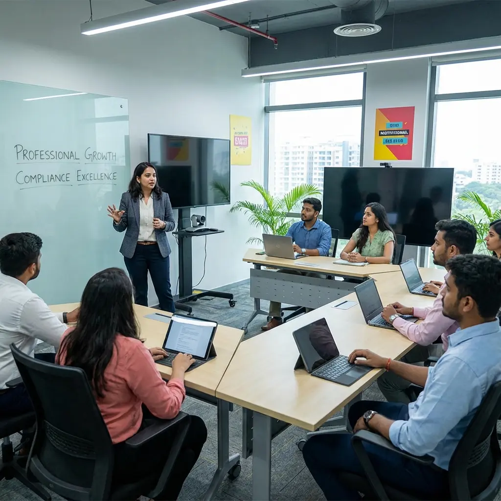 We are the pioneer among the few companies in this business to offer training & upskilling opportunities to all our new employees. With a combined experience of more than 20 years in compliance, we have structured our courses perfectly to equip young minds with everything required to become a successful consultant.